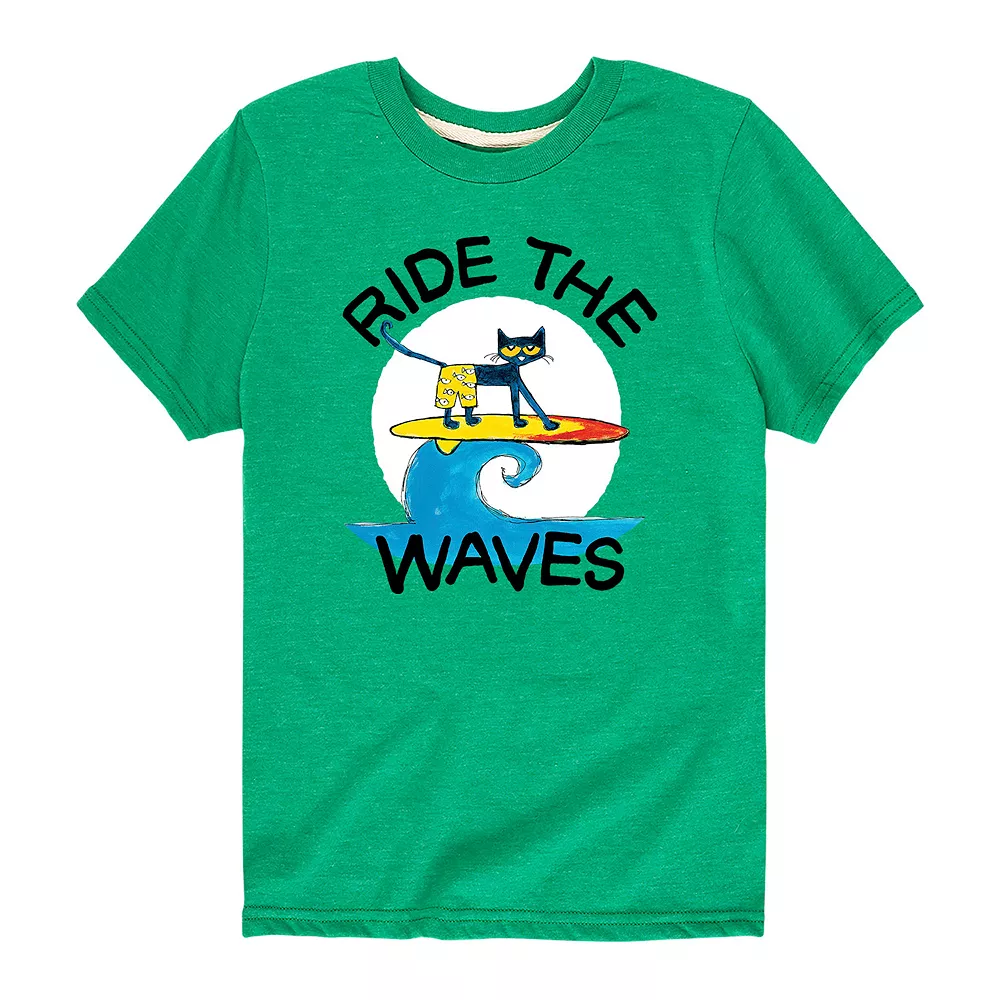 Surf’s up! He’ll be ready for the beach with all his favorite friends in this sunny boys’ Pete The Cat Ride The Waves graphic tee.