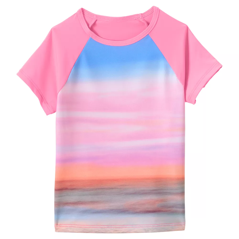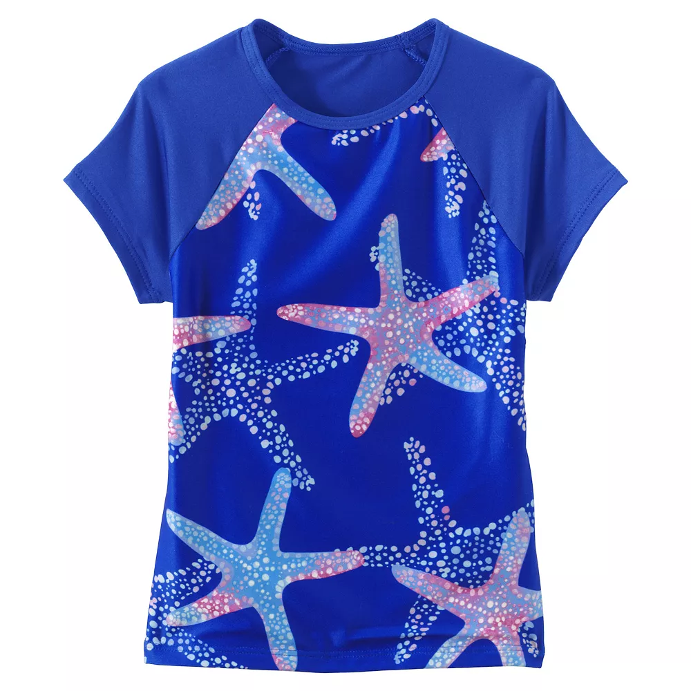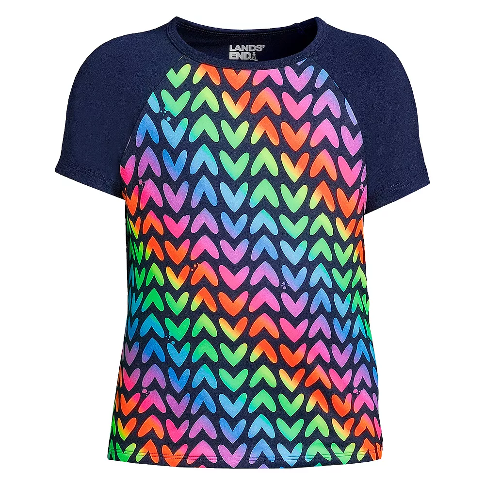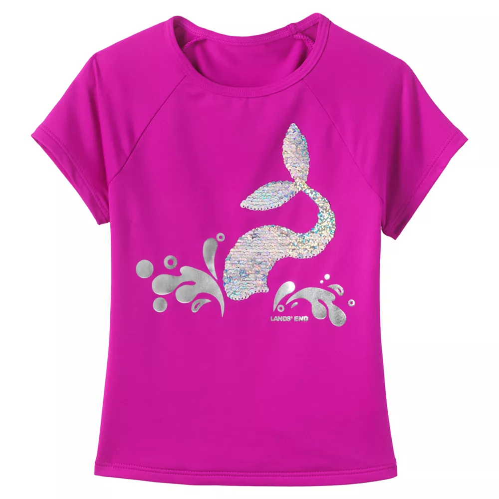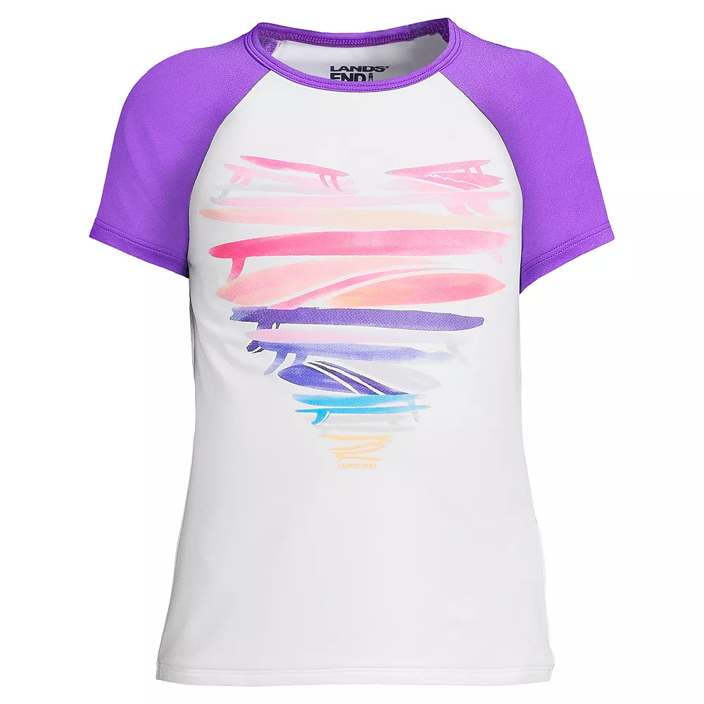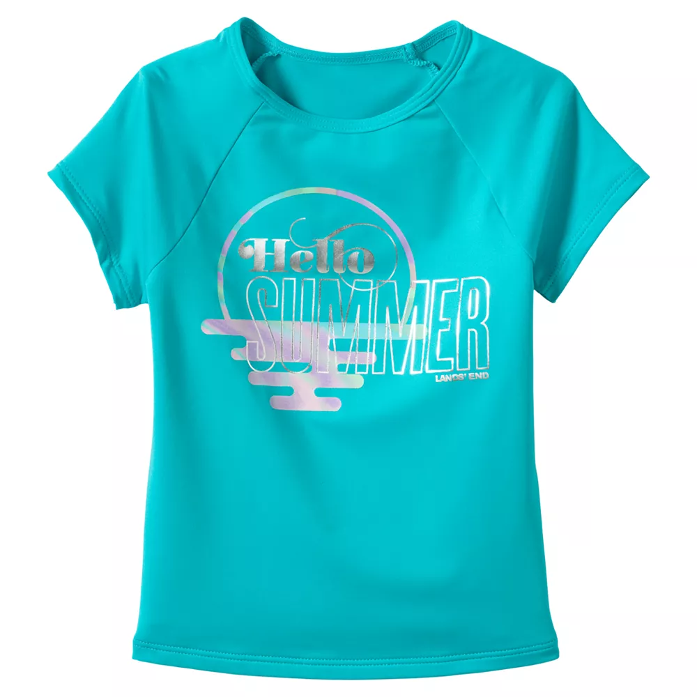 Get her ready for a day of fun in the sun with this short sleeve rash guard from Lands’ End.