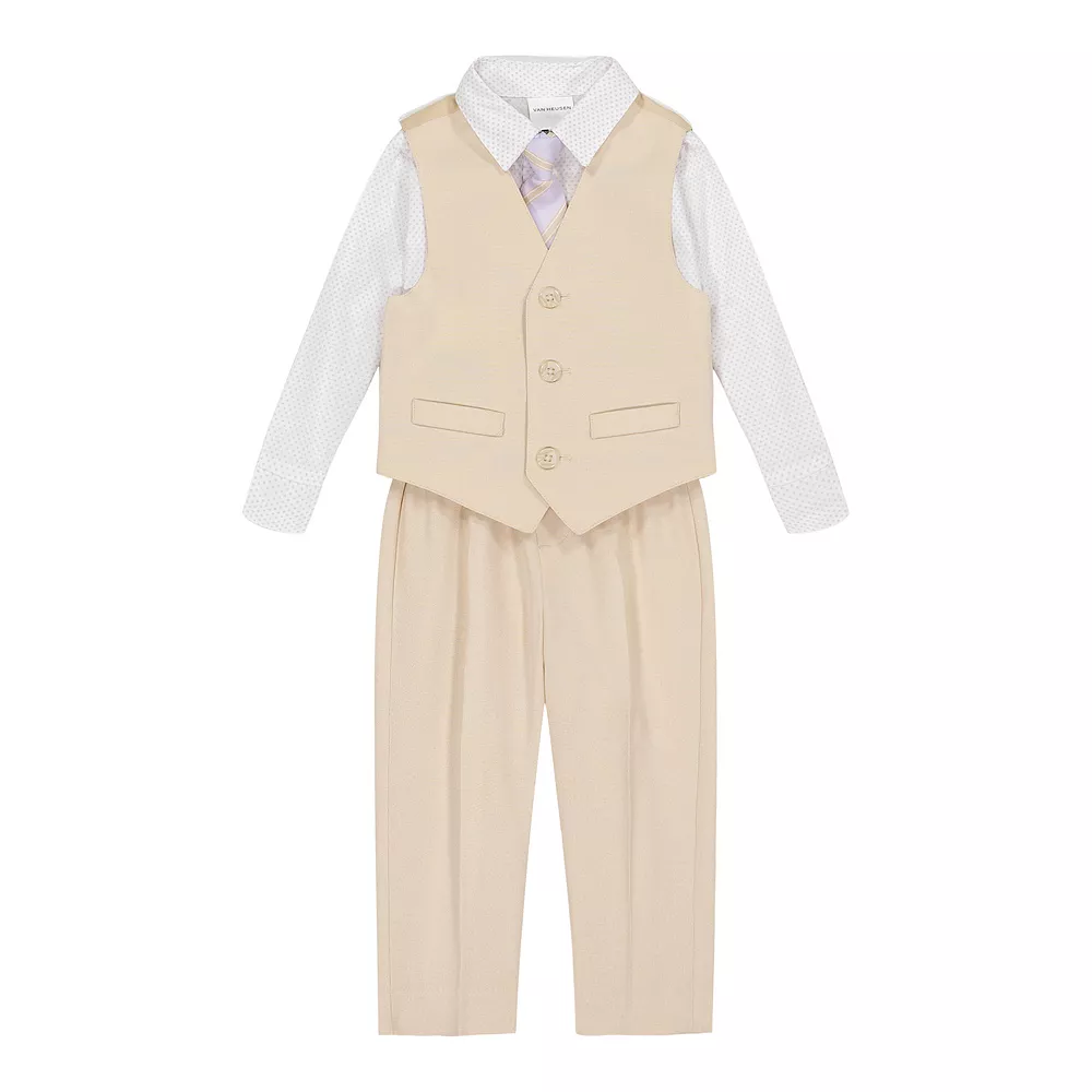 Keep him looking so sharp in Van Heusen with this boys’ shirt, vest, tie and pants set.