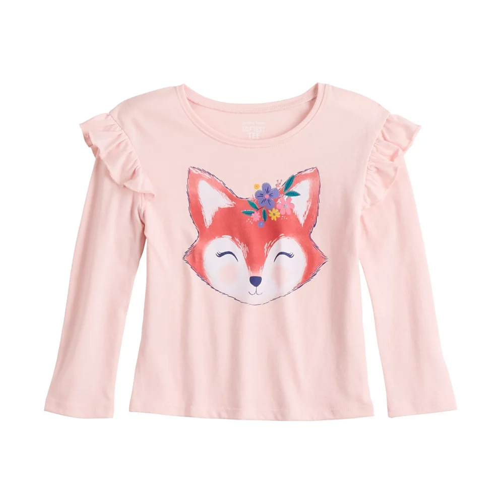 Refresh your little lady’s wardrobe with this toddler girls’ ruffle shoulder long sleeve tee from Jumping Beans.