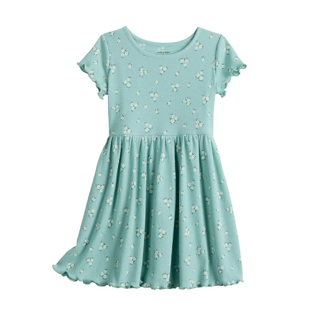She’ll be ready for the warm weather in this sweet lettuce edged toddler girls’ allover print dress from Jumping Beans.
